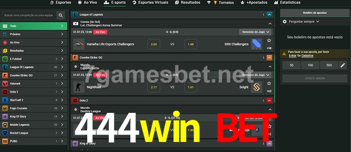 A aposta 444win bet oferece aos jogadores a experiência mais conveniente de apostas em eSports!